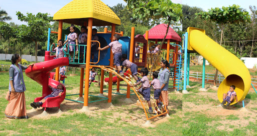 We have a spacious, age appropriate open play ground for the physical and social development of the children.It is equipped with swings , slides ,climbers,jungle,gym,merry-go-round and an open area to run and play